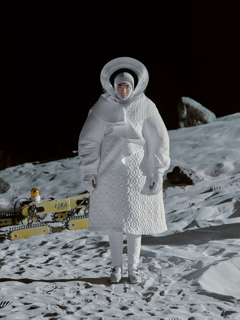 デザイナー森永邦彦はコレクションを通し、宇宙服と地球服の境界を曖昧にし、今は非日常である「月面での日常」が来る日に、想いを馳せ、誰もが月と地球を気軽に往来できる世界を想像します。国や人種を超えた、地球人という感覚が日常になる日を。