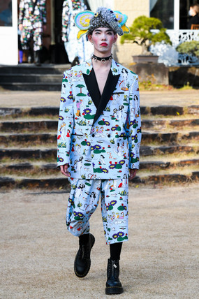 KIDILL 2022A/Wコレクションは、孤高の芸術家ヘンリー・ダーガーの創作における孤独や沈黙、秘密にデザイナー末安弘明が共感。彼の遺作である15000ページにもおよぶ小説原稿と数百枚の挿絵で構成された作品『非現実の王国で』のアイコニックな図案やダーガー特有のくすんだ紫や黄色のカラーがコレクションに反映されています。