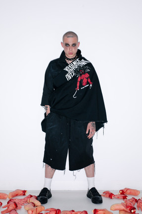 最初期のパンク、ハードコアを象徴するDIYスピリットを大切にするデザイナーを今なお魅了し続けるアンダーグラウンドなカルチャー全般から、人間のダークサイドを肉薄と表現した映画黎明期のホラームービー、自由を志向するストリートの少年たちの代替できない精神とクリエイティビティを活写したスケートビデオなどから多くの影響を受けた今回のコレクション。