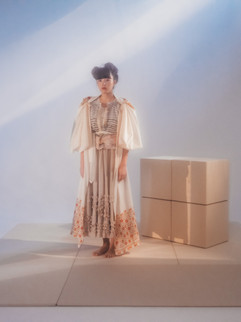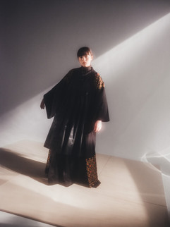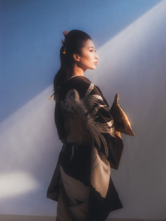 戦後作為的に生み出された厳格なルールに縛られず、本来は自由であった着物の着こなしを目指し、モトーラ世理奈には、時代に応じたトレンドがシームレスに繋がるよう、錚々たる日本人デザイナーのVintageアイテムとともに着物がコーディネートされた。