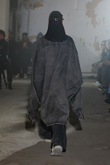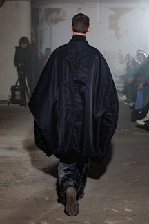 SS24 に登場した「ビッグシルエット」シリーズをさらに肥大化。ケープのように脇下両サイドが開いたエレガントなブルゾンやコートをメンズ、ウィメンズともに多数展開する。