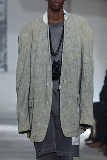 意図的な加工、錯覚や模造などのアプローチで、Maison MIHARA YASUHIRO ならではのユーモアを表現。混沌とした夜の世界も今コレクションの重要なイメージソースとなっている。