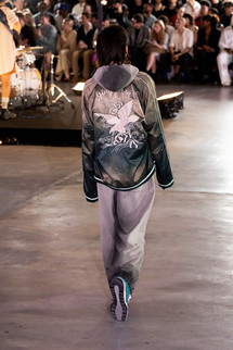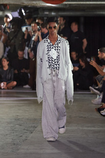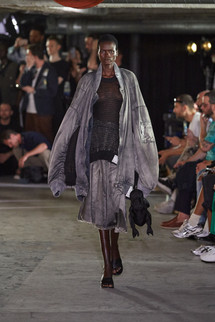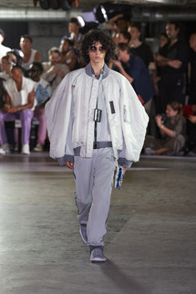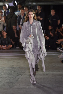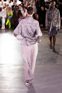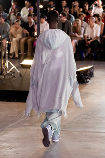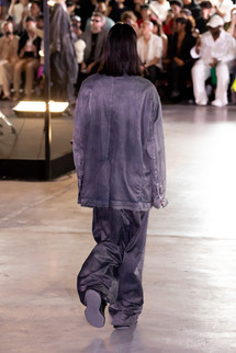 「ビッグシルエット」シリーズをメインに、カラーパレットを制限して展開。さらに、色落ち加工による「ぼやけた色( D u l l c o l o r )」をアシッド( A c i d )の解釈のひとつとして捉えることで、無機質な層を強く印象付ける。Maison MIHARA YASUHIRO の得意とする吹き付けと染色を組み合わせた特殊な技術をアップデート。シグネチャーピースであるデニムやミリタリーウェアが、よりハードな演出を帯びて登場する。