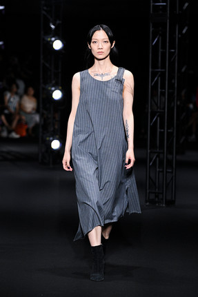 複雑なパターンメイキングを断ち切りやステッチなどで未完成に見せ、危うい魅力を醸し出すsulvam流エレガンスを披露しました。