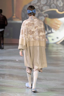 ショーに登場する絵画は高橋盾による油彩とイタリアのペインターRobert Bossisioによるもの。ショーの別の側面としてデザイナー自身が想像する絵描きの日常着もテーマの1つです。現在の不安定な情勢に対し、世界平和と安らぎを強く願う気持ちも込められています。