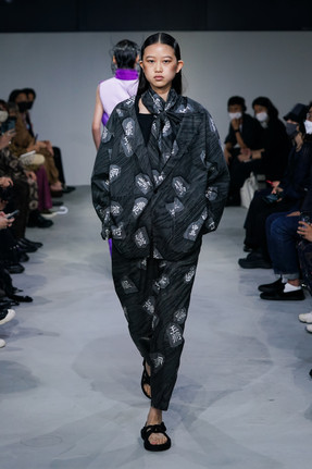 僧兵をテーマに和のミリタリーを展開。将棋のこまのプリント柄や迷彩も竹林であったり、ディテールは和でありながらも、素材やパターンで、スポーティーかつ機能的なアイテムに仕上げている。
